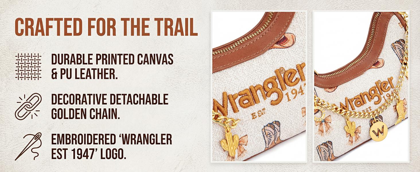 Wrangler Boot Print Shoulder Bag for Women Underarm Cute Purse with Chain